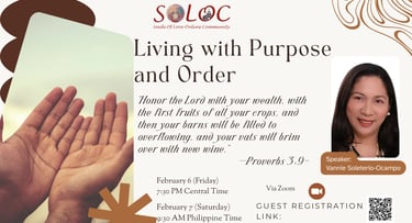 Join us for a spirit-filled SOLOC Online Prayer Meeting (OPM) as we come together in faith for an evening of prayer, reflection, and renewal with the theme: